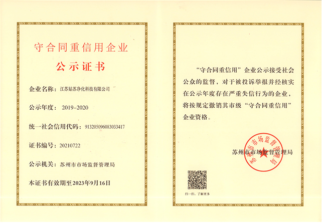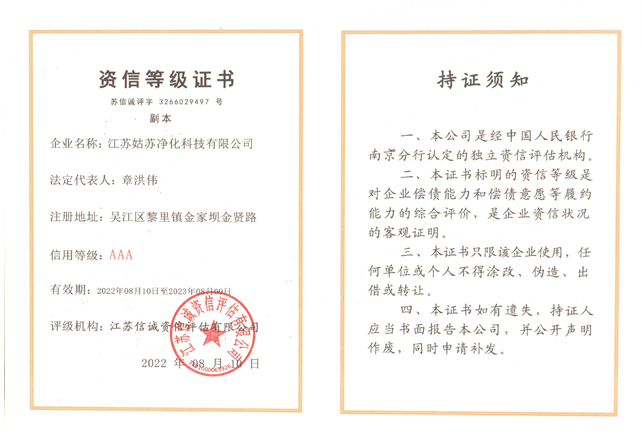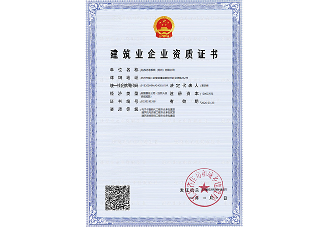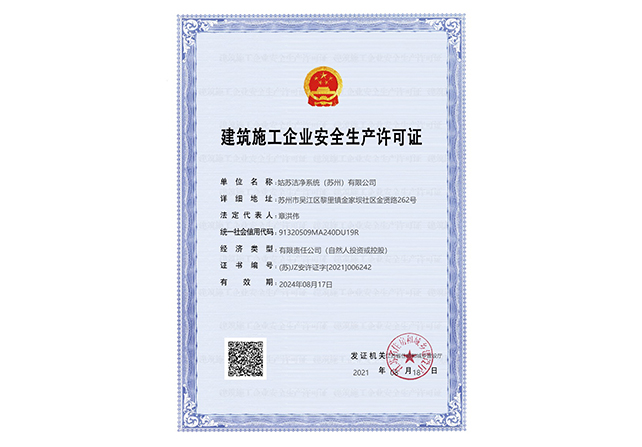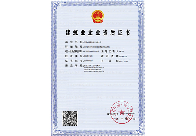 江蘇姑蘇凈化科技有限公司,具有國家電子與智能化工程壹級資質,國家機電安裝工程壹級資質,國家建筑裝修裝飾工程壹級資質 姑蘇凈化科技有限公司,具有國家機電工程施工總承包貳級、國家空氣凈化工程二級資質,國家電子與智能化工程二級資質,國家機電安裝工程二級資質,國家建筑裝修裝飾工程二級資質,消防設施工程專業二級資質企業。