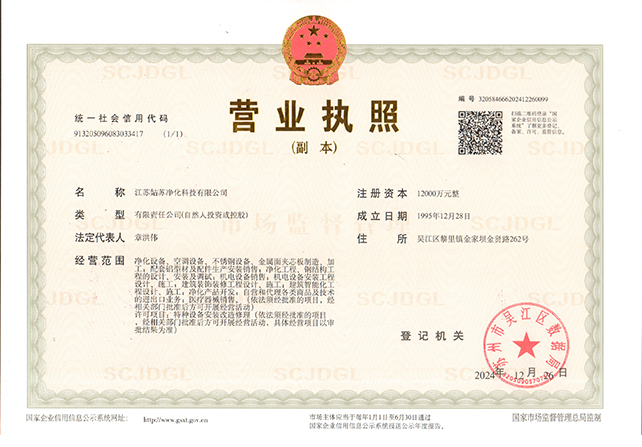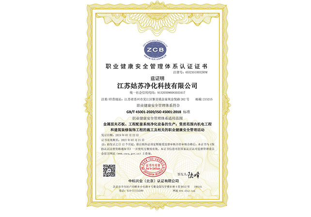 江蘇姑蘇凈化科技有限公司,具有國家電子與智能化工程壹級資質(zhì),國家機電安裝工程壹級資質(zhì),國家建筑裝修裝飾工程壹級資質(zhì) 姑蘇凈化科技有限公司,具有國家機電工程施工總承包貳級、國家空氣凈化工程二級資質(zhì),國家電子與智能化工程二級資質(zhì),國家機電安裝工程二級資質(zhì),國家建筑裝修裝飾工程二級資質(zhì),消防設施工程專業(yè)二級資質(zhì)企業(yè)。